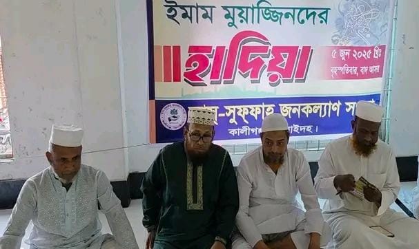পবিত্র ঈদুল আজহা উপলক্ষে কালীগঞ্জের বিভিন্ন মসজিদের ইমাম ও মুয়াজ্জিনদের মাঝে ঈদ সামগ্রী বিতরণ করেছে “আস্ সুফফা জনকল্যাণ সংস্থা”। এ মহতী উদ্যোগে উপস্থিত ছিলেন এলাকার বিশিষ্ট আলেম, ব্যবসায়ী, শিক্ষক ও সমাজসেবকগণ।