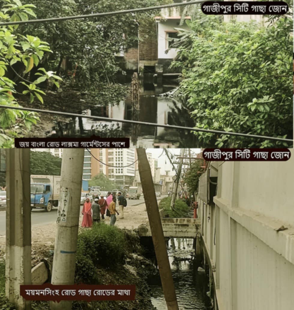 একসময়ের স্বচ্ছ ও প্রশস্ত খাল এখন ইট-বালুর বাঁধা ও বাণিজ্যিক স্থাপনায় রূপ নিয়েছে। এসব দখল ও ভরাটের কারণে বর্ষা মৌসুমে পানি নিষ্কাশনের পথ বন্ধ হয়ে যাচ্ছে, সৃষ্টি হচ্ছে ভয়াবহ জলাবদ্ধতা। নগরবাসীর শঙ্কা, এই অবস্থা চলতে থাকলে সামনের বর্ষায় গাজীপুরে বড় ধরনের জলাবদ্ধতা ও জনদুর্ভোগ অনিবার্য হয়ে পড়বে।