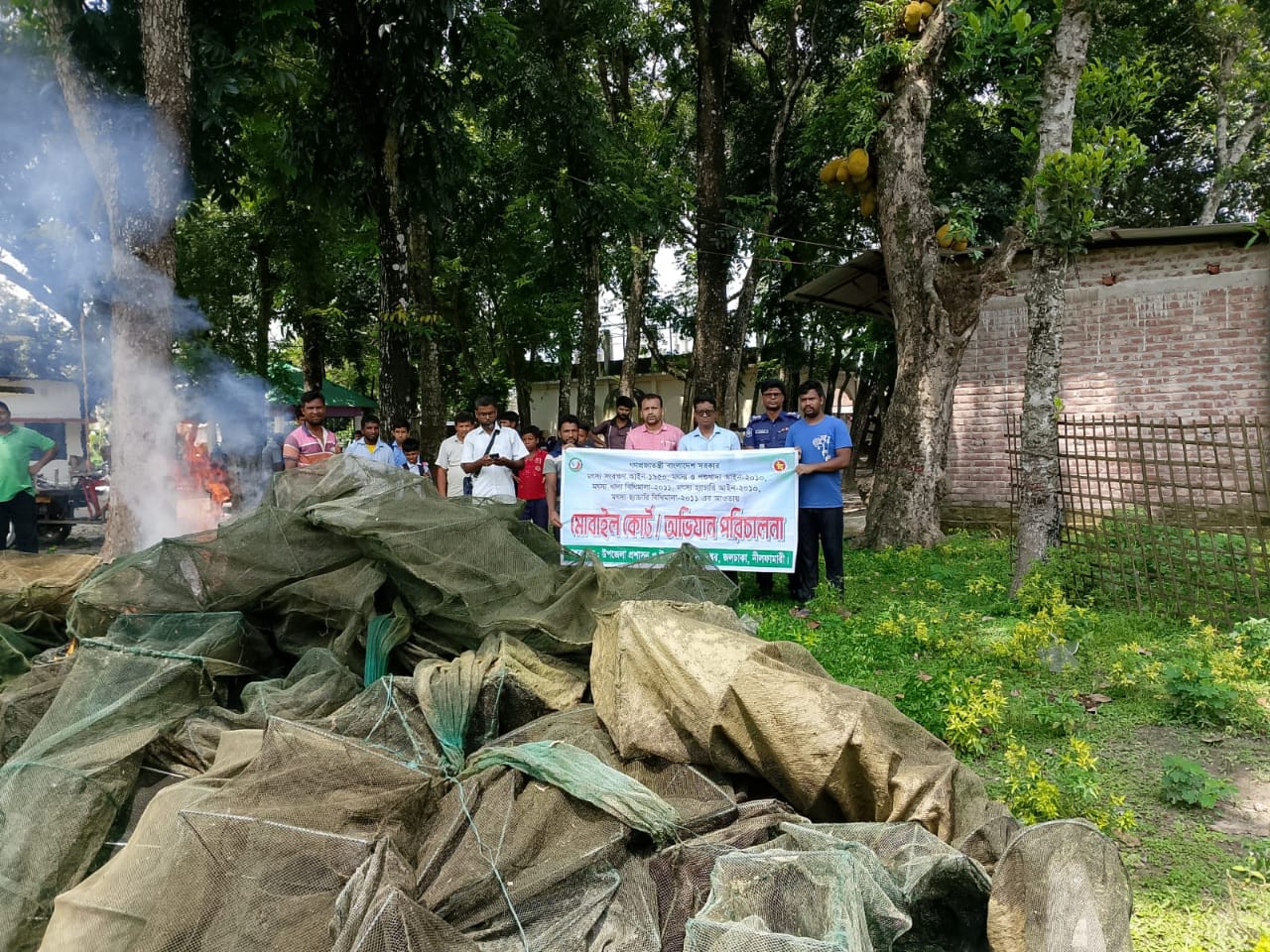 নীলফামারী জলঢাকায় বিভিন্ন স্হানে চালিয়ে ৪০ টি চায়না দুই দুয়ারি জাল পুড়িয়ে দিলেন সহকারী কমিশনার (ভূমি) এ.বি.এম সারোয়ার রাব্বি। সোমবার দুপুরে উপজেলার বগুলাগাড়ী, দুন্দিবাড়ি ও বালাগ্রাম এলাকায় অভিযান চালিয়ে নিষিদ্ধ ঘোষিত এ চায়না জাল জব্দ করে। যার আনুমানিক মূল্য দুই লক্ষ্য টাকা। দেশী মাছ রক্ষাতে উপজেলা মৎস অফিসের আয়োজনে এ অভিযানে পুলিশ ও উপজেলা প্রশাসন অংশগ্রহণ করে। মৎস সংরক্ষণ আইন ১৯৫০ এর আইনে এ অভিযান চালানো হয়েছে। উপজেলা মৎস কর্মকর্তা আরিফুল আলম বলেন চায়না দুই দুয়াড়ী জাল নিষিদ্ধ করেছে সরকার। এই জাল সংরক্ষণ, বিক্রি, ব্যাবহার সম্পূর্ণ নিষিদ্ধ। দেশি মাছ রক্ষাতে এ অভিযান অব্যাহত থাকবে।